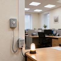 Световой маяк монтируется на высоте 1,5-2,1 м в зоне хорошей видимости. Подключается к сети 220В и интегрируется с кнопкой вызова.